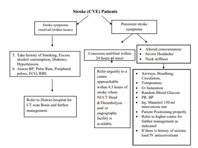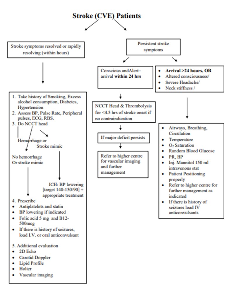 In this part of our series of emergency interventions, we discuss the salient clinical nuggets of the guidelines by the Directorate General of Health Services and the Ministry of Health and Family Welfare prepared for healthcare providers involved in the management of patients with stroke. The focus of this article is on the more common clinical questions faced in day-to-day practice.