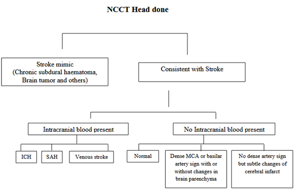 All patients should have their clinical course monitored and any patient whose clinical course is unusual for stroke should be reassessed for possible alternative diagnosis Brain imaging should be performed urgently in all patients with suspected stroke to determine the type of stroke (ischaemic or hemorrhagic), rule out stroke mimics like chronic subdural haematoma, brain tumours and to plan for treatment.