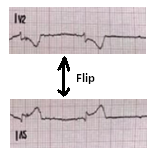 This diagram depicts the reciprocal connection between the ECG abnormalities associated with STEMI and those associated with posterior infarction. The preceding picture has been flipped to show a posterior infarction in V2. As you can see, the ECG now resembles that of a classic STEMI.