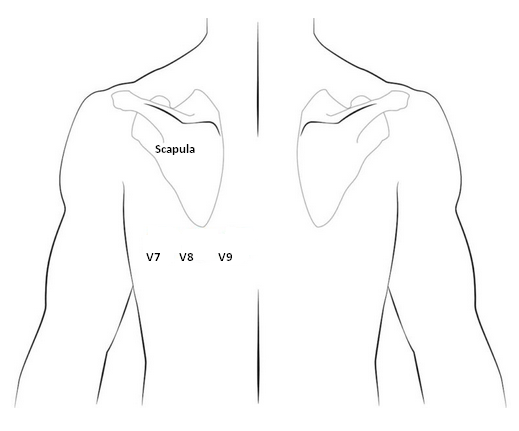 ST-elevation is usually mild in V7-9 — remember that just 0.5 mm of ST elevation is needed to diagnose posterior MI.