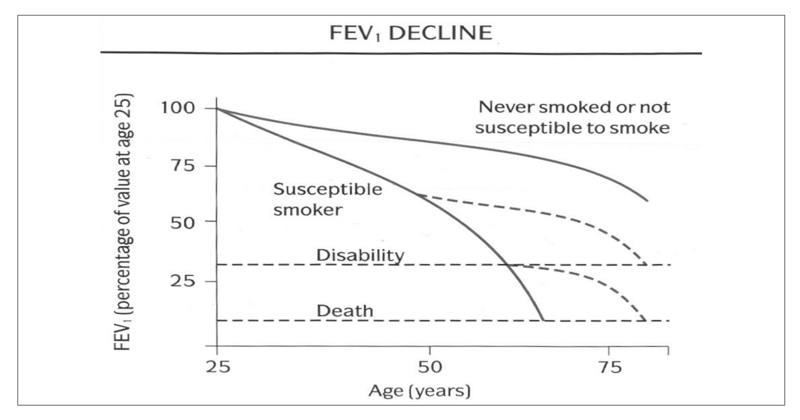 • COPD is evident by age 50