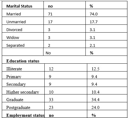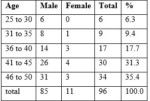 Table 1 Age and sex-wise distribution of study subjects (n=96)