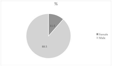 - In a retrospective study done in Jharkhand, 52.2% were in the age >35 years. Very few patients are in the age group below 35 years. Most of the patients (88.5%) were males. (figure 1) Male preponderance was found in other studies also,[10],[14],[15],[22].