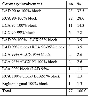 Table 4 Coronary involvement among those who undergone angiography (n=77)