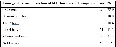 Table 5 Time gap between detection of MI after onset of symptoms (n=96)