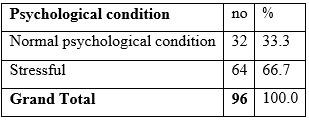 - 2/3rd of patients had a stressful psychological condition which is 66.7%. (table 6.5) Stress leads to an increase in the release of catecholamines including epinephrine and norepinephrine leading to an indirect increase in blood pressure which predisposes to MI.