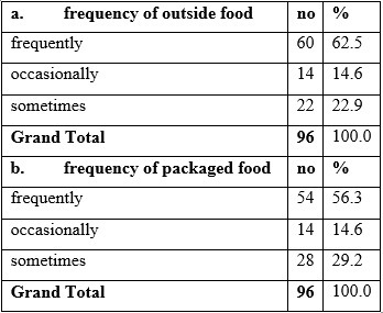 Table 6.7 Dietary habits for outside and packaged food among study subjects