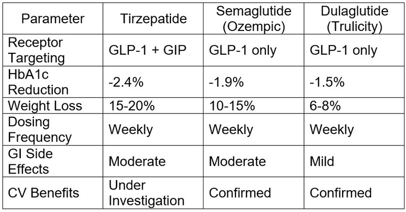 Comparison: Tirzepatide vs. Other GLP-1 RA Therapies