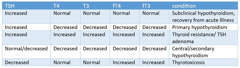 - Low TSH with normal fT4/fT3: Subclinical hyperthyroidism