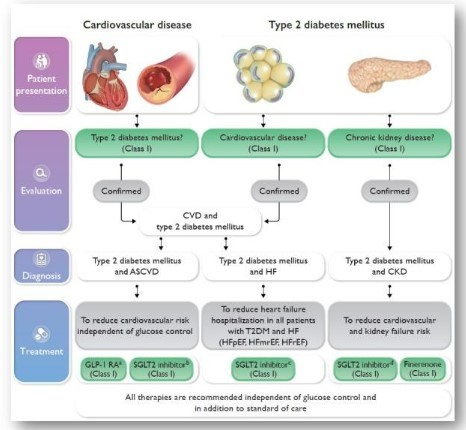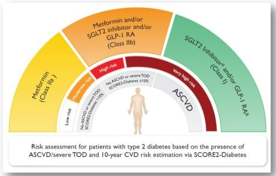 - Introduce SGLT2 inhibitors or GLP-1 receptor agonists in people with CVD at A1C goal (independent of metformin) for cardiovascular benefit, independent of baseline A1C or individualised A1C goal.