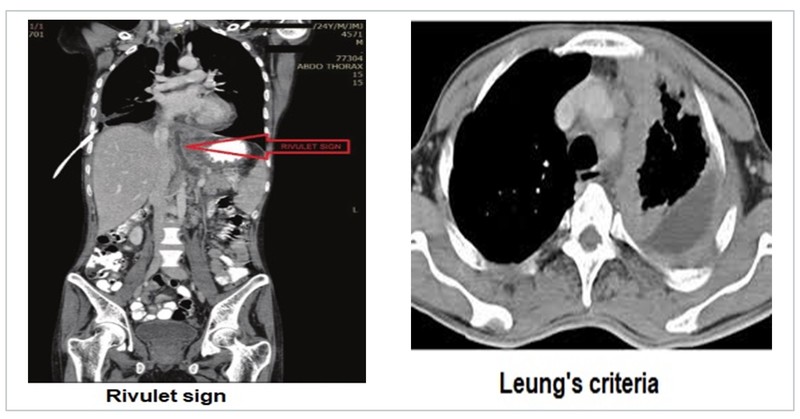 Fallen lung sign, Swiss cheese sign, collar sign