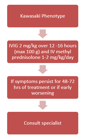 Appropriate supportive care is needed preferably in ICU for the treatment of cardiac dysfunction, coronary involvement, shock or multi-organ dysfunction syndrome (MODS)