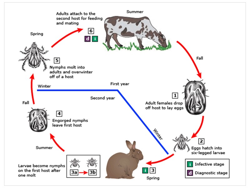 CCHFV is mainly transmitted by Hyalomma family ticks, particularly Hyalomma marginatum. The most common viral reservoirs are domestic animals such as cattle, sheep, goat, and pig , infected by adult ticks. Ticks can remain attached to the animals for 2 to 13 days. During this period, virus begins to replicate. It cannot survive outside the host but may be active in infected body fluids such as blood, stool, or vomit.