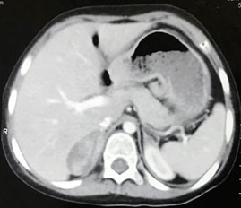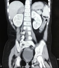 Figure 3: CT Abdomen showing right adrenal mass