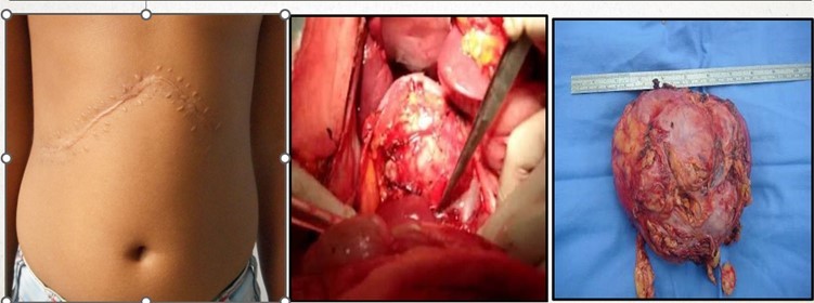 Figure 4: Right adrenalectomy and specimen photo