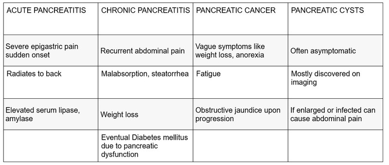 - Diagnostic evaluation: Accurate diagnosis of pancreatic disorders relies on a combination of clinical evaluation, imaging studies, and laboratory tests: