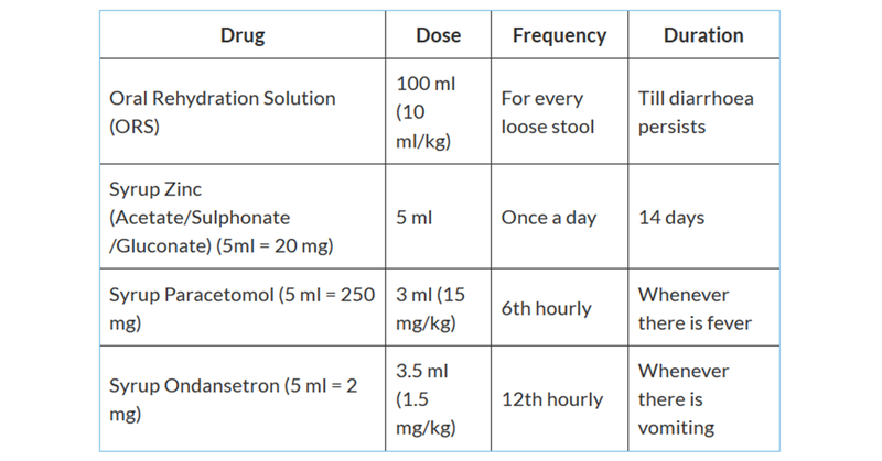 - Oral rehydration solution and zinc supplements are the treatment options.