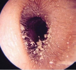 Most external canals are self-cleaning with the desquamated skin migrating up to the hair follicles where it is separated from the dermis and mixes with the cerumen to form wax. The wax leaves the ear canal by moving down the hair. The most common finding is partial occlusion of the canal. In the majority of patients, this will be an incidental, symptomless finding. (1)
