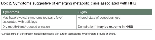 Symptoms and signs in the patient with an acute illness and/or persistent hyperglycemia should be considered a potential hyperglycemic emergency.