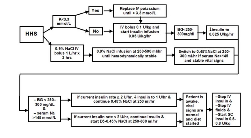 These images provide an overview of how to treat DKA and HHS.