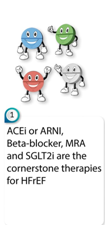 - An angiotensin-converting enzyme inhibitor or angiotensin receptor-neprilysin inhibitor, a beta-blocker, a mineralocorticoid receptor antagonist, and a sodium-glucose cotransporter 2 inhibitor are recommended as cornerstone therapies for all patients with HF with reduced ejection fraction and may be considered in patients with mildly reduced ejection fraction.