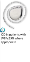 - In patients with a left ventricular ejection fraction of less than 35%, an implanted cardioverter-defibrillator is suggested in situations of ischaemic origin and should be evaluated in cases of non-ischaemic aetiology.