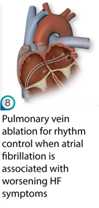 - When atrial fibrillation is linked with increasing HF symptoms, pulmonary vein ablation should be explored for rhythm control.