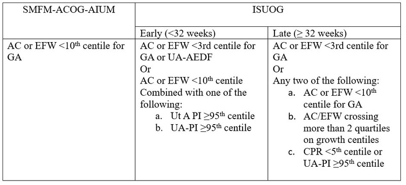 US and ISUOG diagnostic criteria for foetal growth restriction