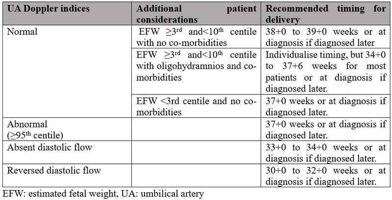 Table 2: Delivery timing in case of foetal growth restriction based on UA Doppler and weight