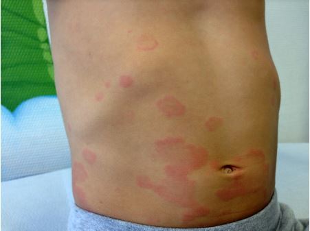- Intensely pruritic wheals, pale to erythematous in colour, round, polymorphic and some rapidly coalesce into serpiginous lesions.