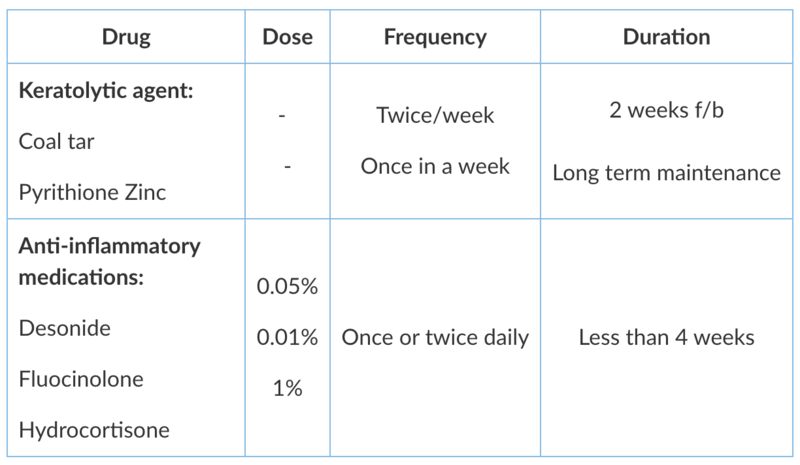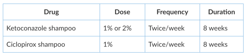 - Emollients and shampoos should be the initial treatment followed by topical anti-fungal agents.