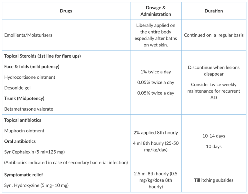 Infants not responding to the above treatment need a dermatologist referral. In older children in addition to the above steps, the below medications can be added.