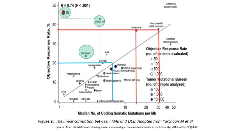 - Shown below (Fig. 2) is the increasing likelihood of obtaining DCB with increasing TMB, exception being RCC, Hodgkin Lymphoma and Merkel cell carcinoma.