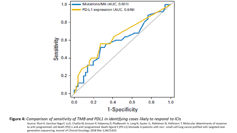Despite a lot of attention on TMB as a predictive marker for ICIs, the predictive value of TMB is no better than PDL1 expression with the area under curve being similar. Moreover, what value of TMB should be used as a cut point to segregate positive and negative have not been well defined.