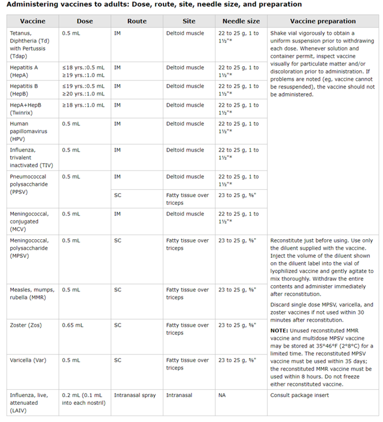 Most adult vaccines are administered intramuscularly or subcutaneously, usually in or over the deltoid muscle. Anticoagulation is not a contraindication to vаϲϲinаtiοn.