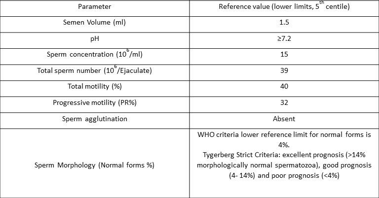 The World Health Organisation’s accepted reference value for semen analysis, 2010