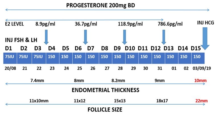 - Treatment with multiple attempts of controlled ovulation induction was done following the diagnosis.