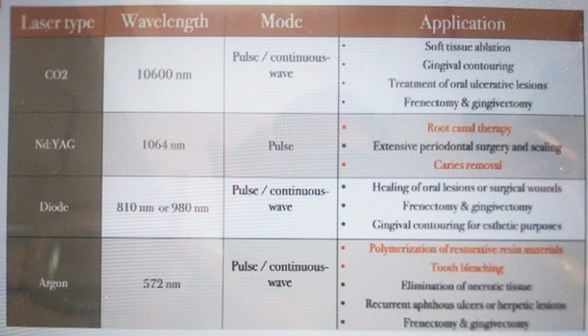 - Oral tissues have a distinguishing affinity for absorbing laser energy of specific wavelengths.