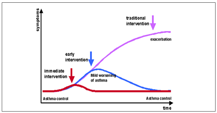The SMART therapy apart from reliever doses of bronchodilator formoterol; helps by early anti-inflammatory intervention in the form of additional doses of ICS and maintains good control thus preventing exacerbations.