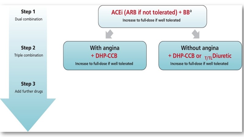 - In patients with hypertension and CAD, it is recommended to use drugs with documented favourable effects in CAD such as ACEis (ARBs if not tolerated) or BBs.