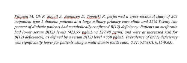 Several cross-sectional studies and case reports have documented an increased frequency of vitamin B12 deficiency among type 2 DM (T2DM) patients.