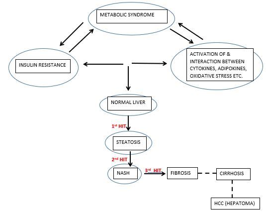 An enzyme involved in the hydrolysis of triacyl-glycerols in adipocytes has been reported to be associated with NAFLD independent of the metabolic syndrome. [10, 11] The pathological progression of NAFLD follows tentatively a ‘three-hit process namely steatosis, lipotoxicity and inflammation. [12]