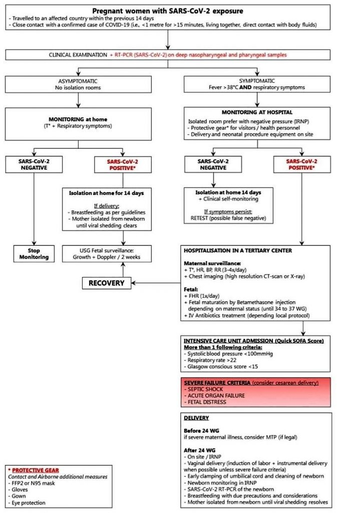 Pregnant Women's Management Flowchart (Adapted from The Lancet)