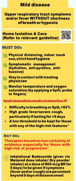 May be applicable- If symptoms (fever or cough) continue beyond five days from the commencement of the illness, inhalational Budesonide (at a dosage of 800 mcg BD for five days) should be administered.