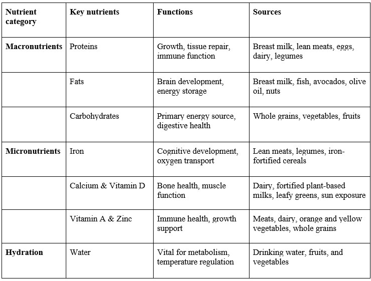 Essential nutritional components in early childhood