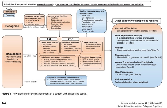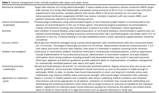 - The 2016 updated Surviving Sepsis Campaign guideline underscores the advantages of promptly identifying and resuscitating patients with sepsis and septic shock. If intravenous fluid targets are not achieved, it is recommended to promptly refer the patient to critical care services.
