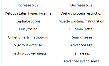 Factors affecting serum creatinine