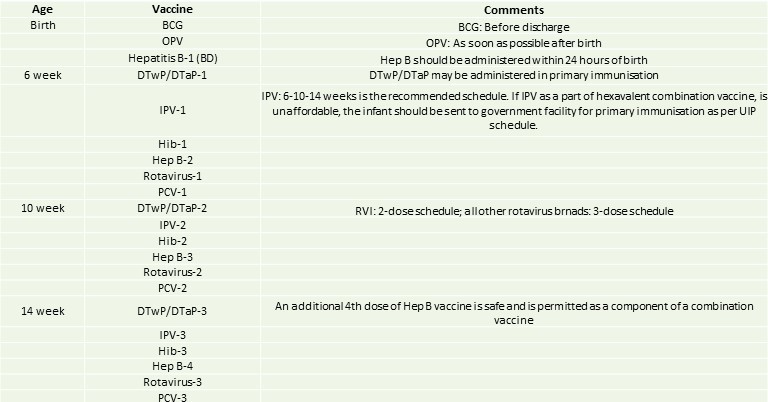 - No child should receive the pentavalent vaccine alone or the bOPV vaccine alone in infancy without also receiving IPV (two doses of fractional dosage intradermal IPV at 6 weeks and 14 weeks or a single dose of full-dose intramuscular IPV/hexavalent combination at 14 weeks). The newborn must be referred to a government healthcare facility for primary immunisation in accordance with the UIP schedule if hexavalent vaccinations are not affordable or readily available.