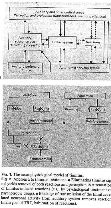 Jastreboff from the University of Maryland described a neurophysiological model for a generation of tinnitus and the basis for habituation therapy. It presumes that tinnitus does not cause as much annoyance as the emotional reactions generated by the limbic and autonomic systems.