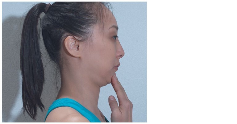 - Gently glide back your chin towards your neck without bending or moving your head. You will feel a slight stretch towards your upper neck.